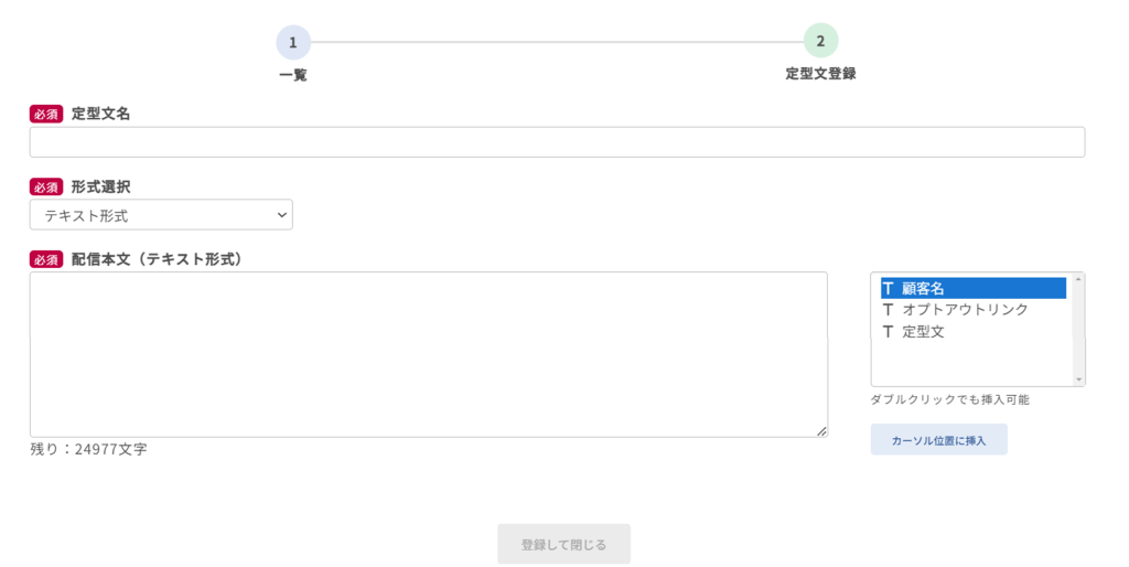 【配信管理】>【定型文管理】