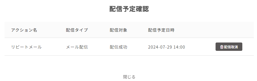 - 「配信予定確認」をクリックすると、