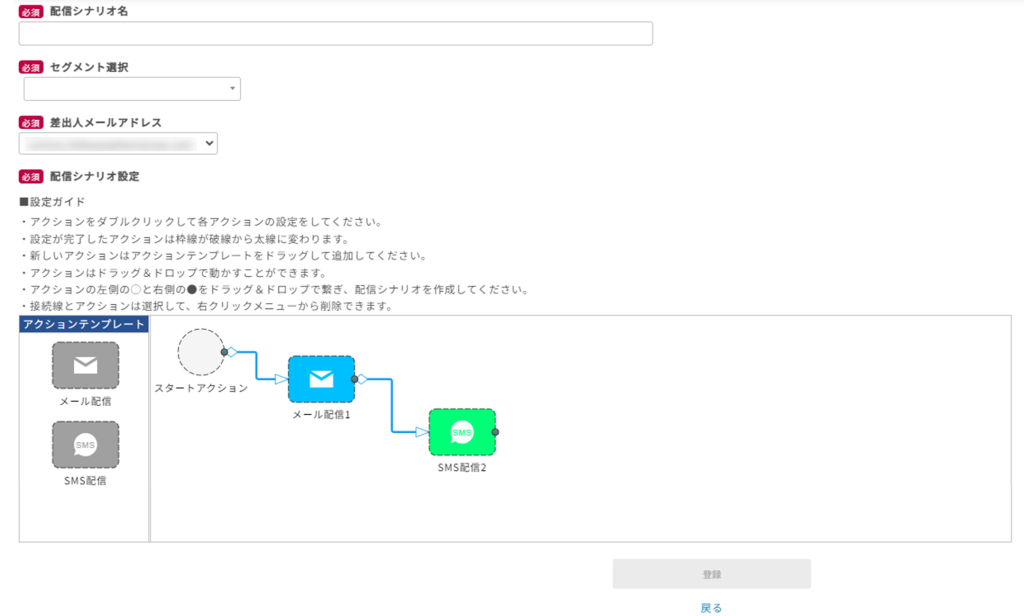 - 「配信シナリオ登録」をクリックし、