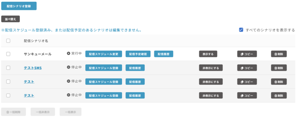 作成した配信シナリオを非表示にできます。