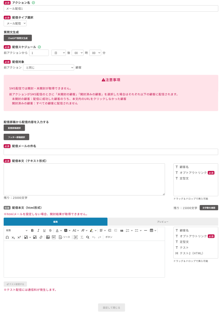 配信本文(テキスト形式)の登録が必要です。