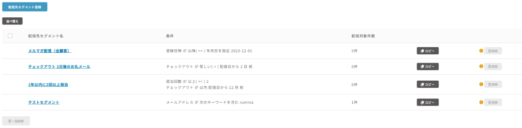 作成した配信先セグメントをコピーすることができます。