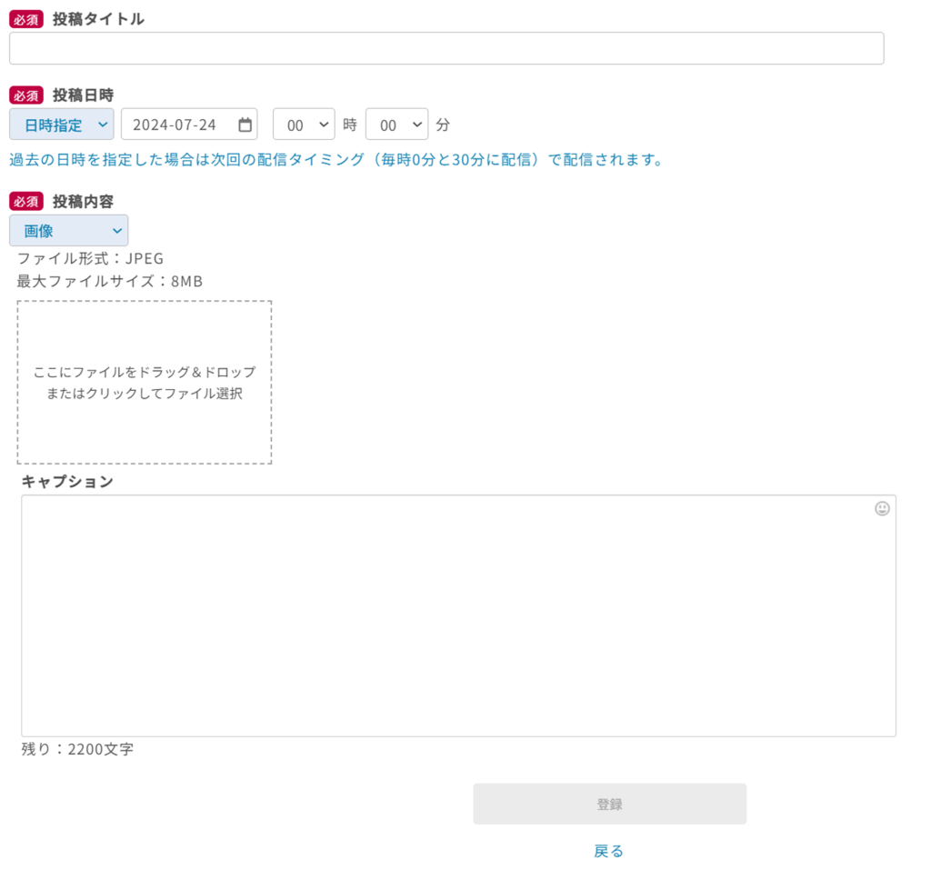 Instagramに投稿したい内容を作成いただき日時指定を行うことで、